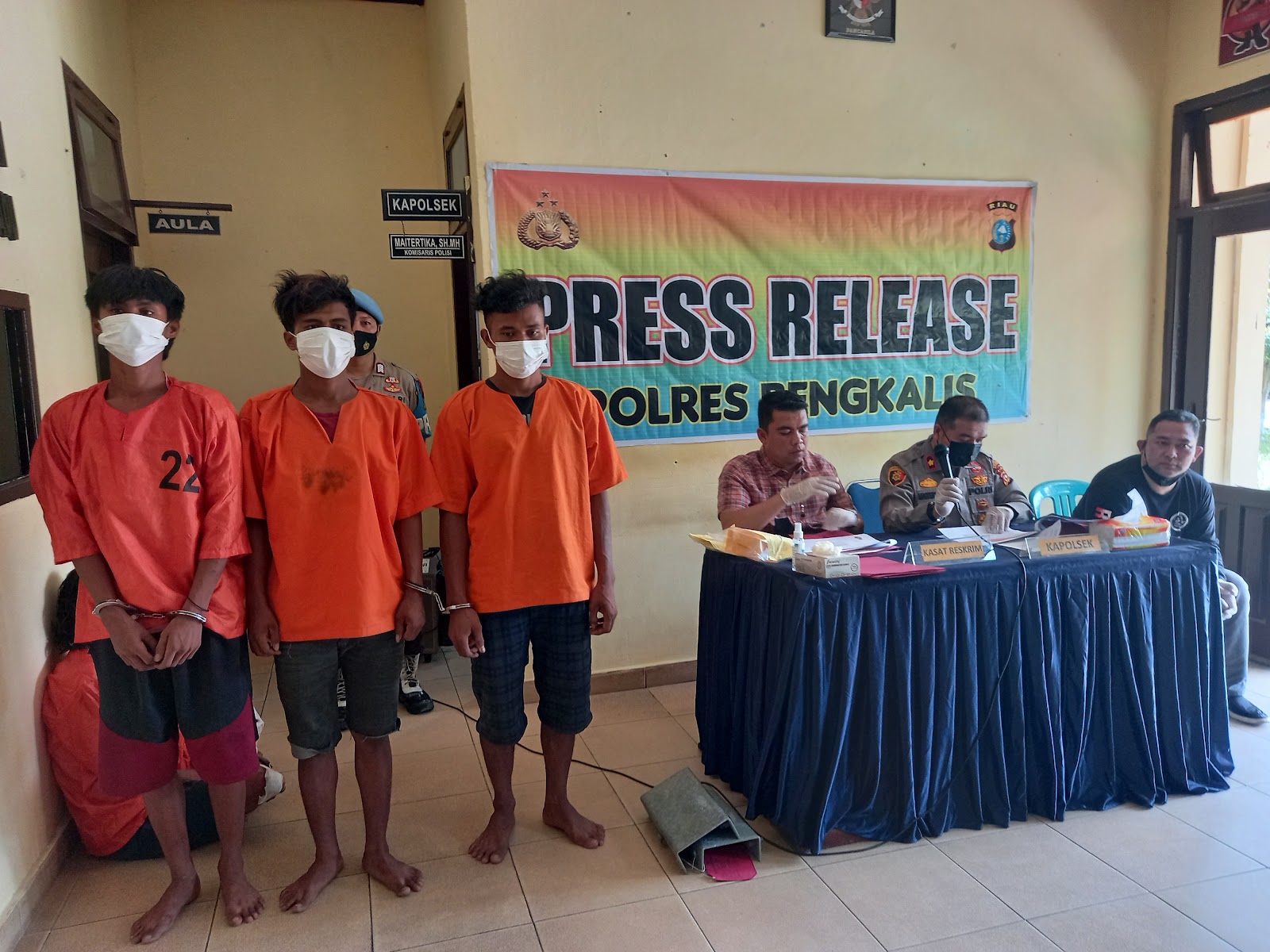 " Kelima tersangka saat ini sudah diamankan dalam sel tahanan Polsek Pinggir guna proses hukum selanjutnya,", papar Kapolsek Pinggir Kompol Maitertika.