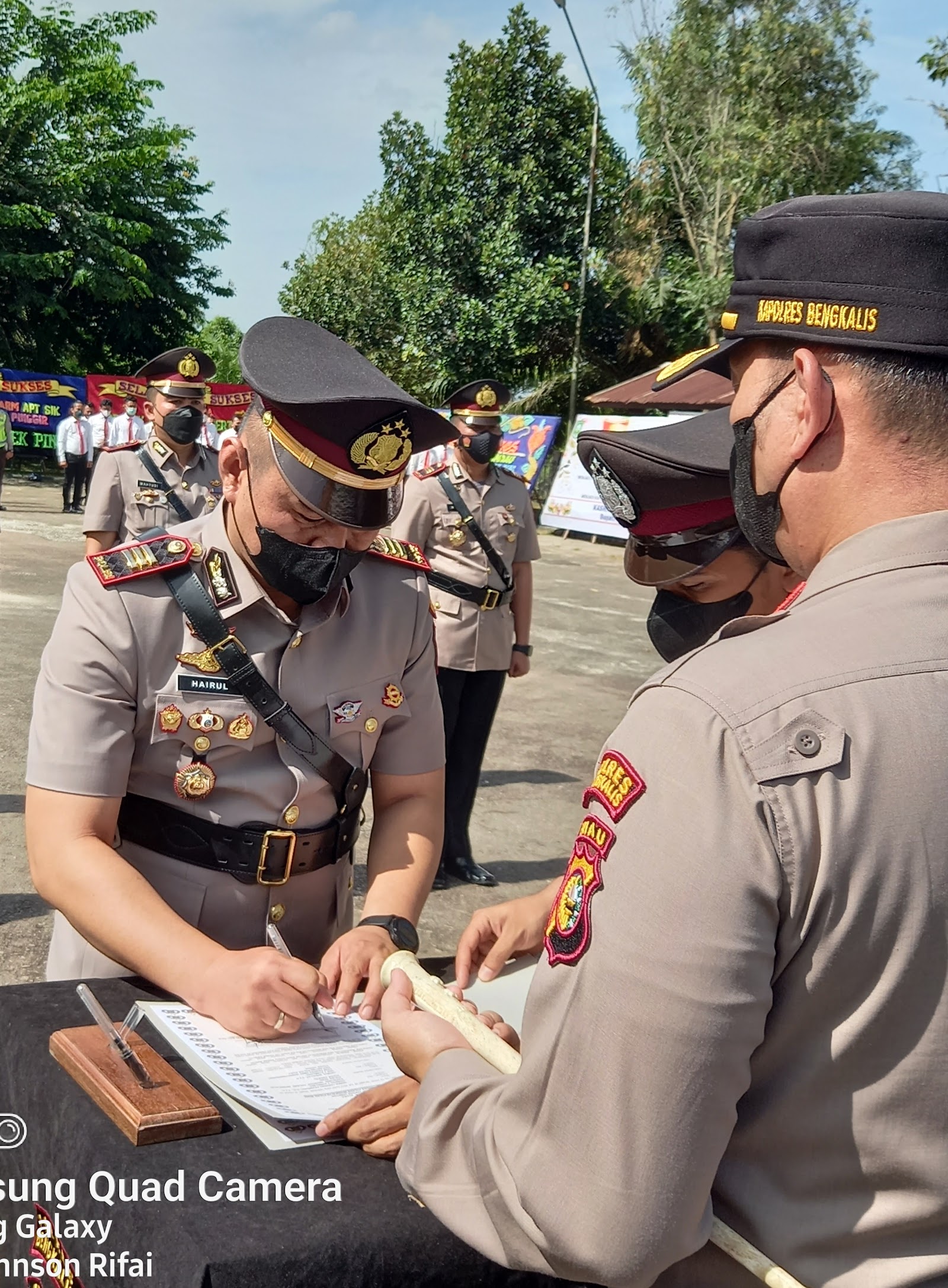 Kapolres Bengkalis AKBP Indra Wijatmiko dalam arahannya menyampaikan proses mutasi atau pindah jabatan adalah bagian proses dari Pembinaan karir dan regenerasi, struktural di tubuh Polri, demi optimalisasi kinerja dan demi meningkatkan kualitas kerja dan demi terlaksananya kinerja yang dinamis.