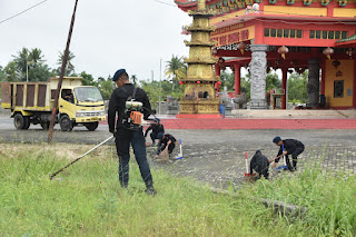 Pada kesempatan ini, Wadansat Brimob Polda Riau beserta anggota melaksanakan kegiatan gotong royong di tempat ibadah Vihara Kwan Tee Kong Bio.